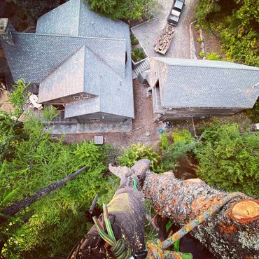 Whether we use our 40 ton articulating grapple saw crane or intricate rigging systems to take care of your tree; we focus on zero impact on your lawn, driveway, and surrounding buildings, so you can rest assured your lawn and structures remain safe, clean, and free from damage.